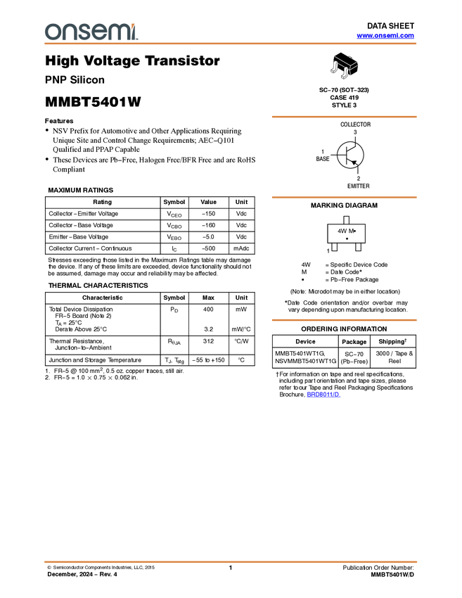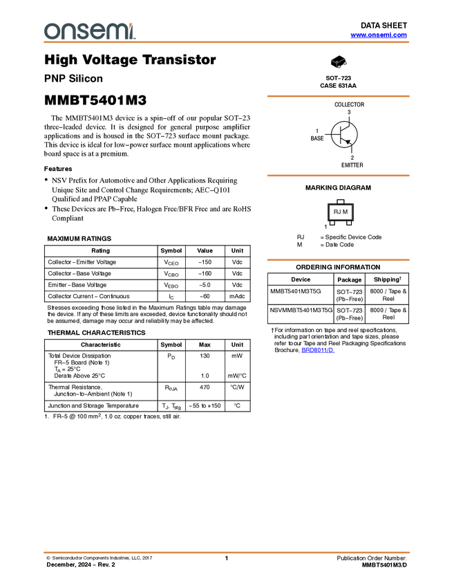 150 V, 60 mA, Low V<sub>CE(sat) PNP Transistor in SOT-723