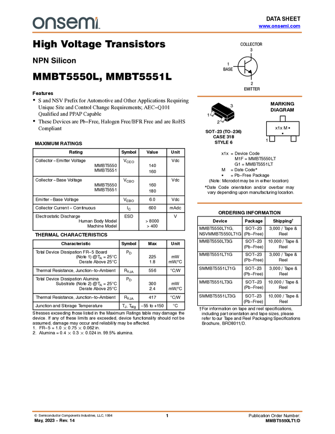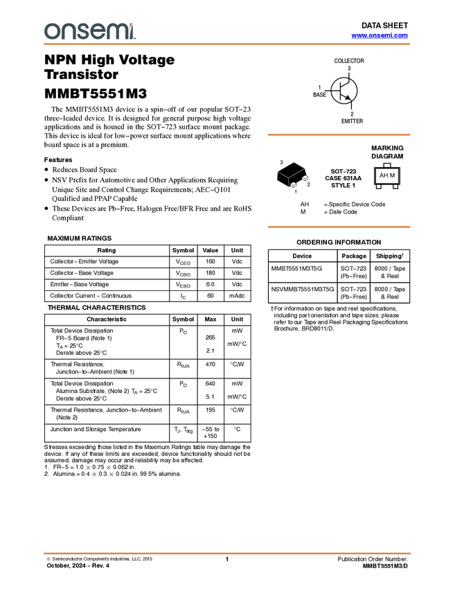 600 mA, 160 V NPN General Purpose Bipolar Junction Transistor