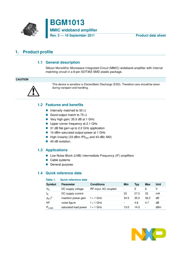 1 GHz 12 dB gain wideband amplifier MMIC