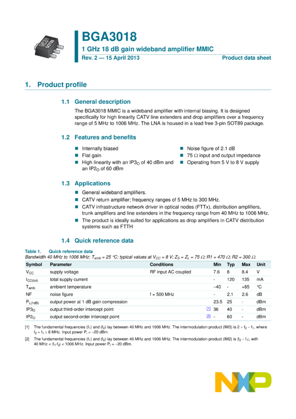 1 GHz 18 dB gain wideband amplifier MMIC