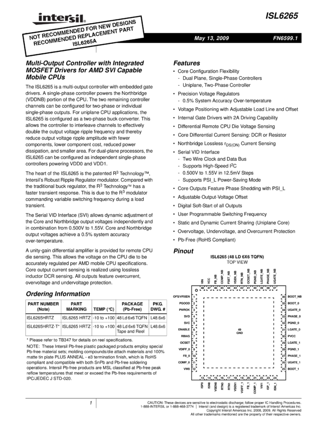 Multiphase PWM Regulator for IMVP-6.5™ Mobile CPUs and GPUs