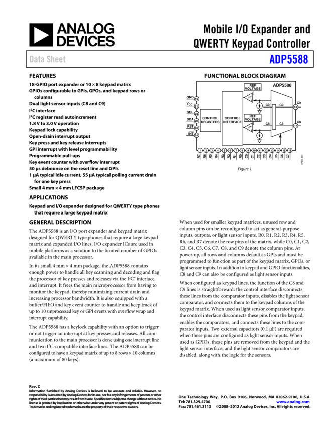 ADP5588: Mobile I/O Expander and QWERTY Keypad Controller