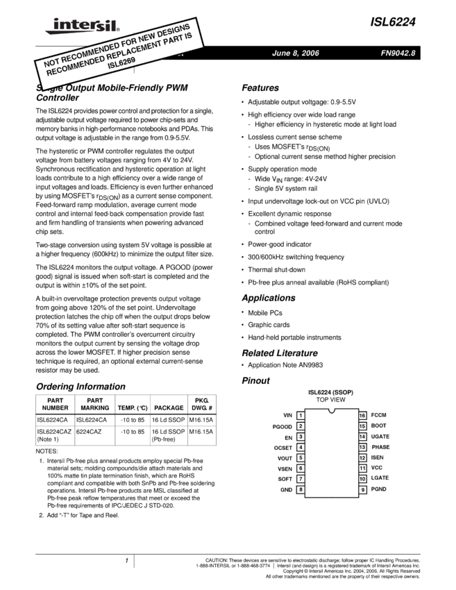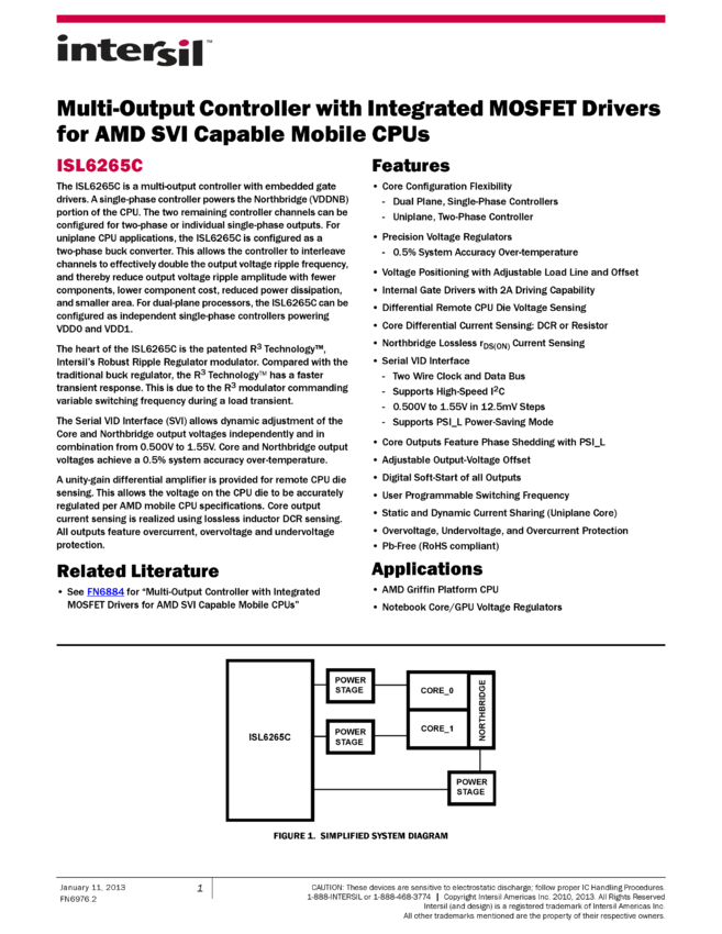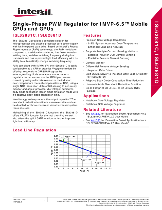 Single-Phase PWM Regulator for IMVP-6.5™ Mobile CPUs and GPUs
