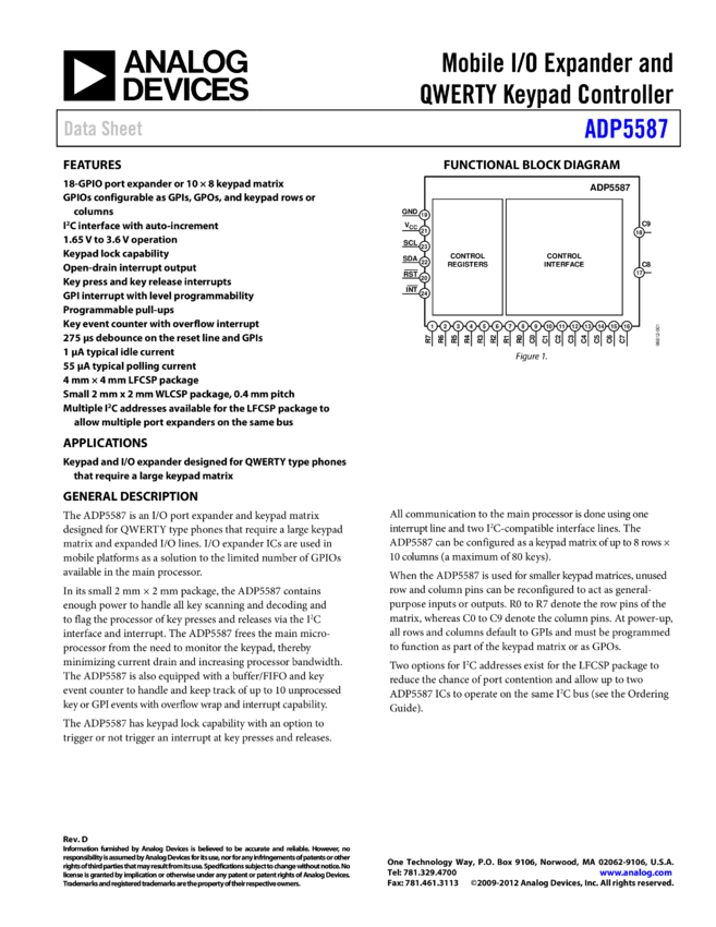 ADP5587: Mobile I/O Expander and QWERTY Keypad Controller
