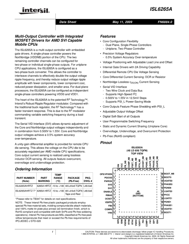 Multi-Output Controller with Integrated MOSFET Drivers for AMD SVI Capable Mobile CPUs