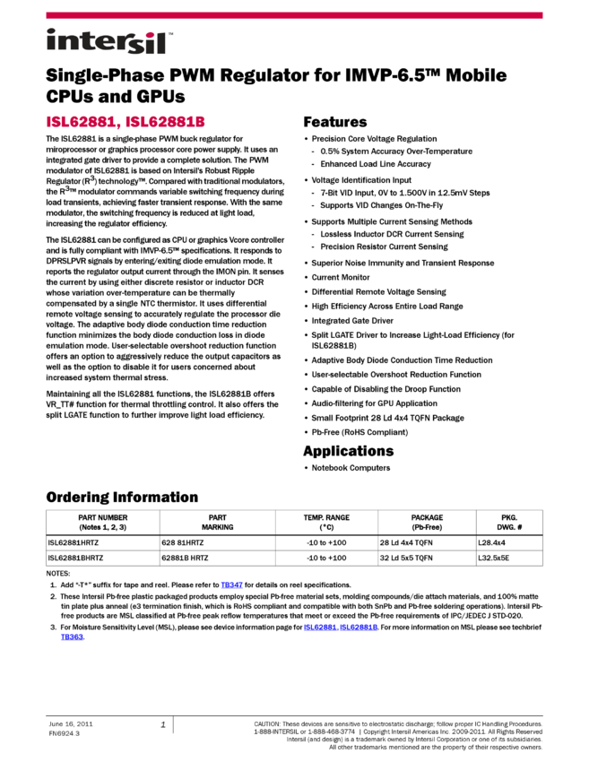 Multiphase PWM Regulator for IMVP-6.5™ Mobile CPUs