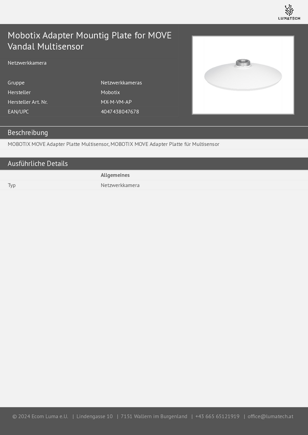 Płytka montażowa Mobotix Mx-M-VM-AP
