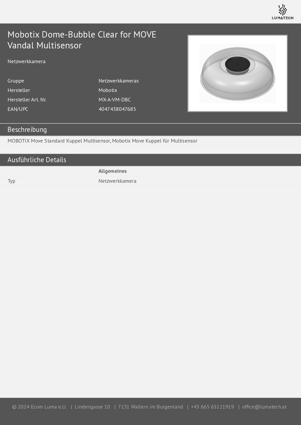 Kamera kopułkowa Mobotix Mx-A-VM-DBC