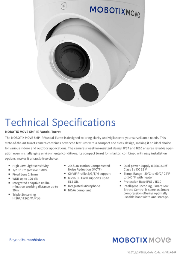 Kamera monitoringu IP Mobotix Mx-VT1A-503-IR LAN 2720 x 1976 px
