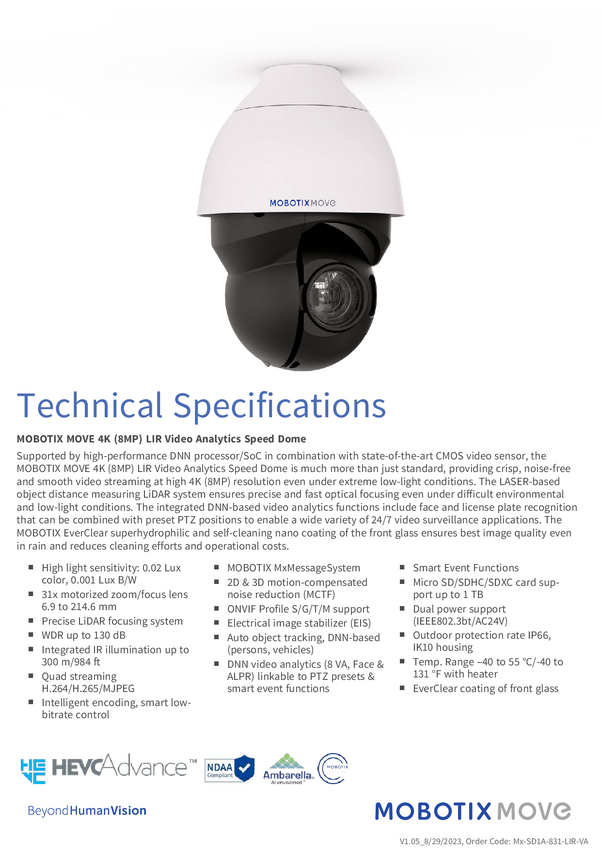 Kamera monitoringu IP Mobotix Mx-SD1A-831-LIR-VA LAN 3864 x 2180 px