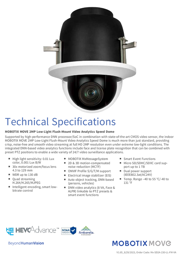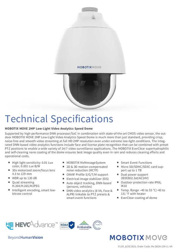 Kamera monitoringu IP Mobotix Mx-SD2A-230-LL-VA LAN 1920 x 1080 px