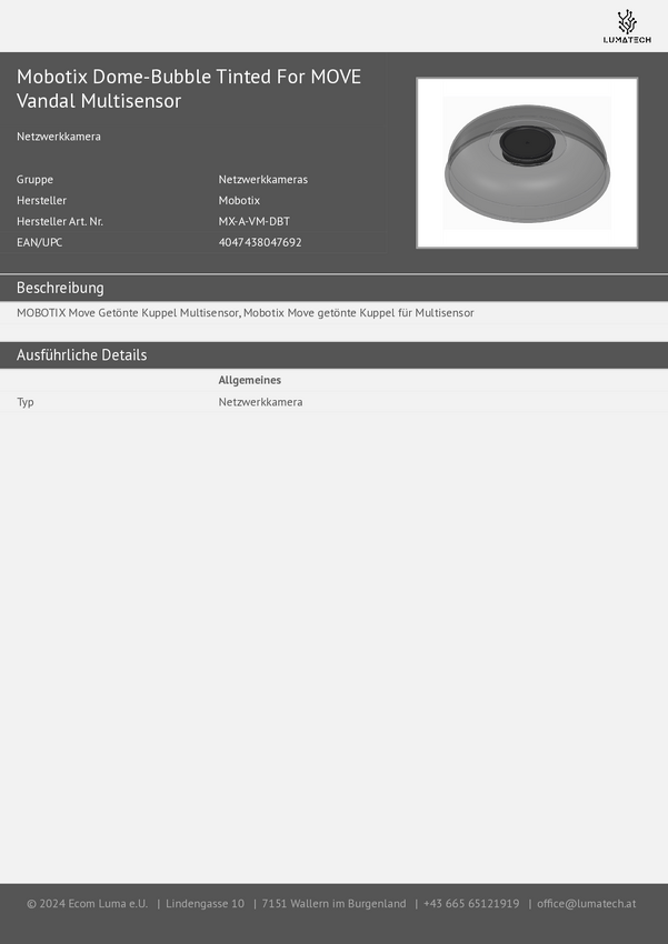 Kamera kopułkowa Mobotix Mx-A-VM-DBT