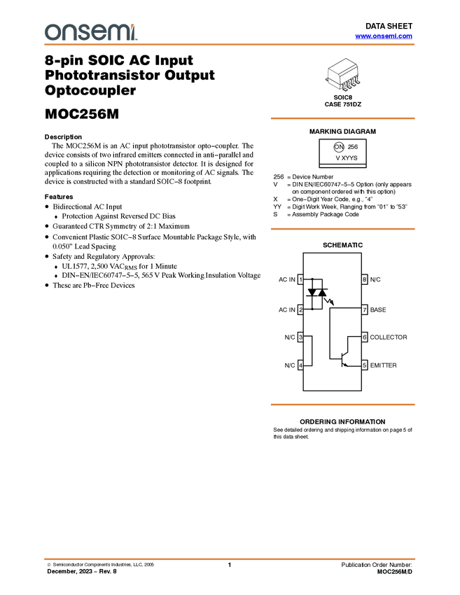 8-Pin SOIC AC Input Phototransistor Output Optocoupler