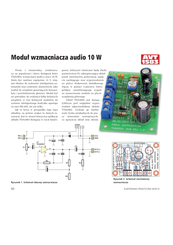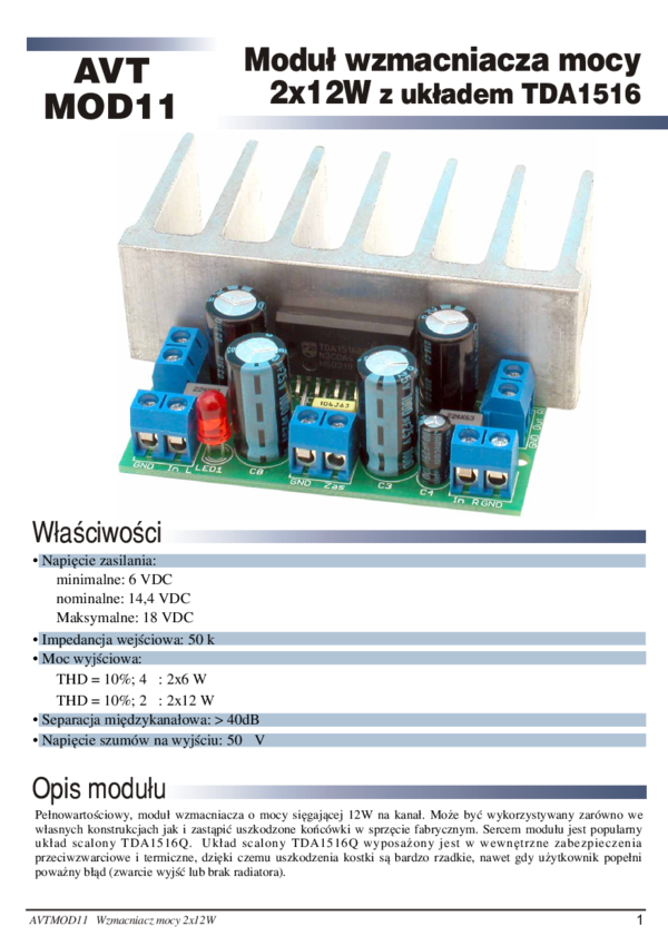 AVTMOD11 Moduł wzmacniacza mocy 2x12W z układem TDA1516