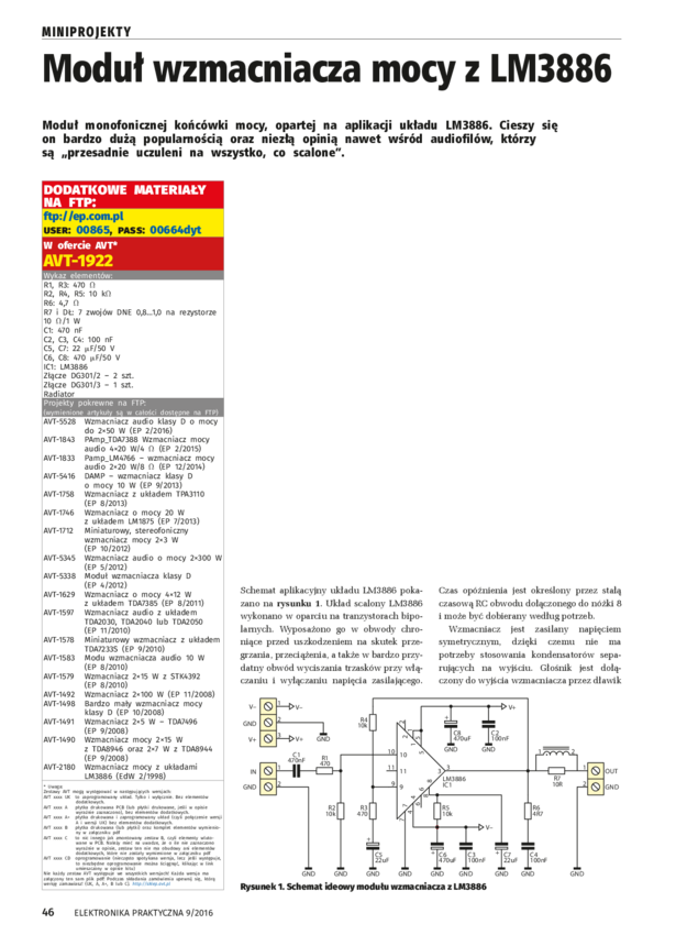 AVT1922 Moduł wzmacniacza mocy z LM3886