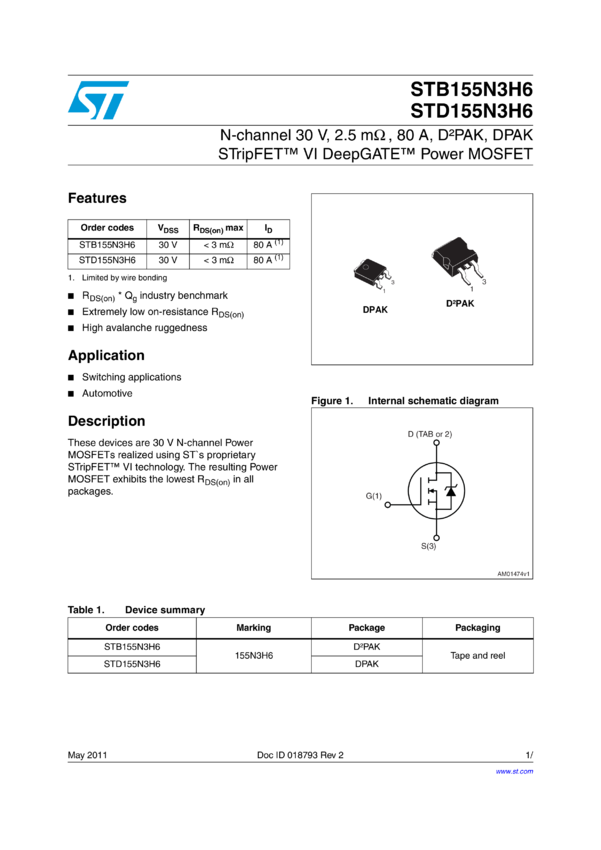 N-channel 30 V, 2.5 mOhm, 80 A, D2PAK STripFET(TM) VI DeepGATE(TM) Power MOSFET