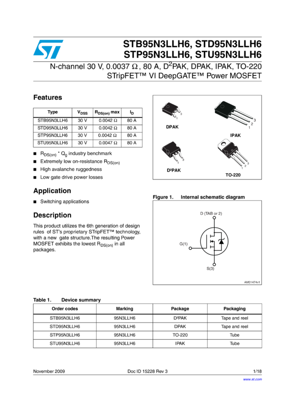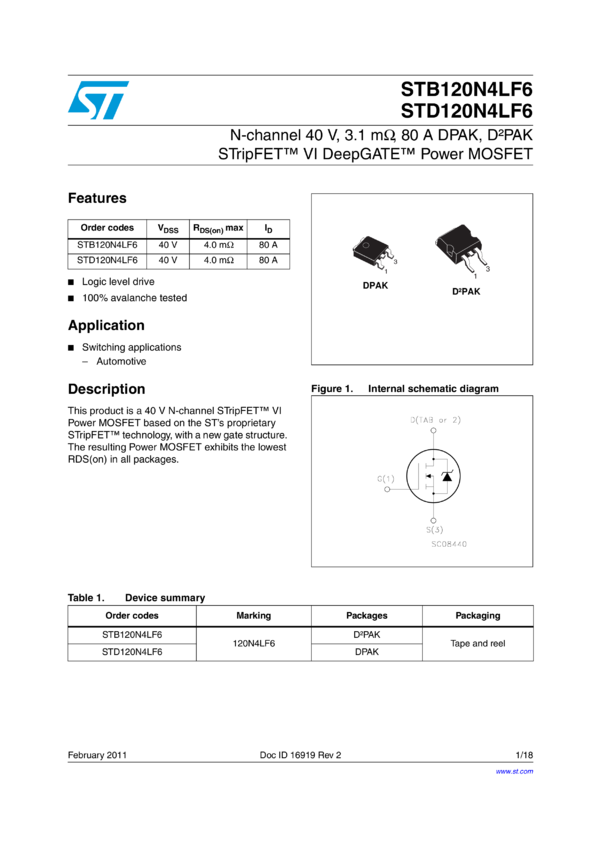 N-channel 40 V, 3.5 mOhm, 80 A, D2PAK STripFET(TM) VI DeepGATE(TM) Power MOSFET