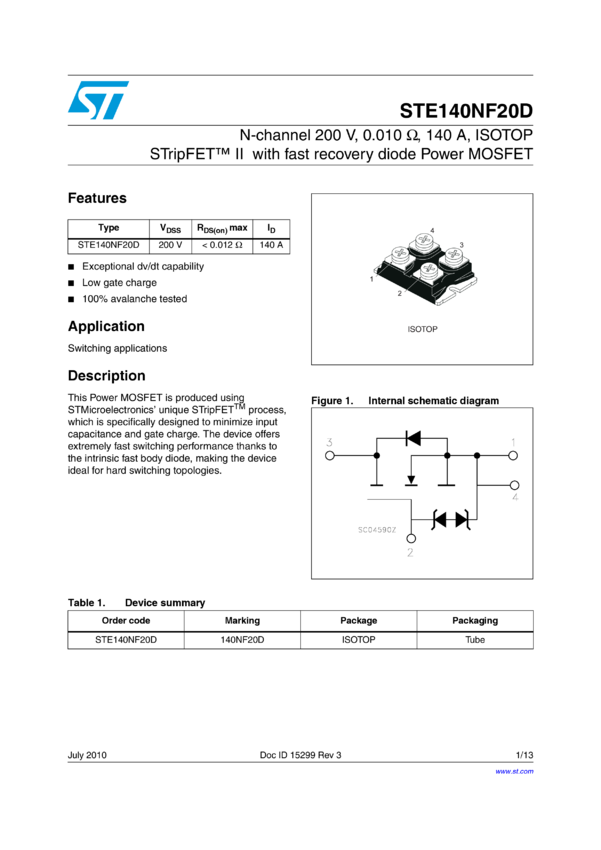 N-channel 200 V, 10 mOhm typ., 140 A STripFET(TM) II Power MOSFET (with fast diode) in an ISOTOP package