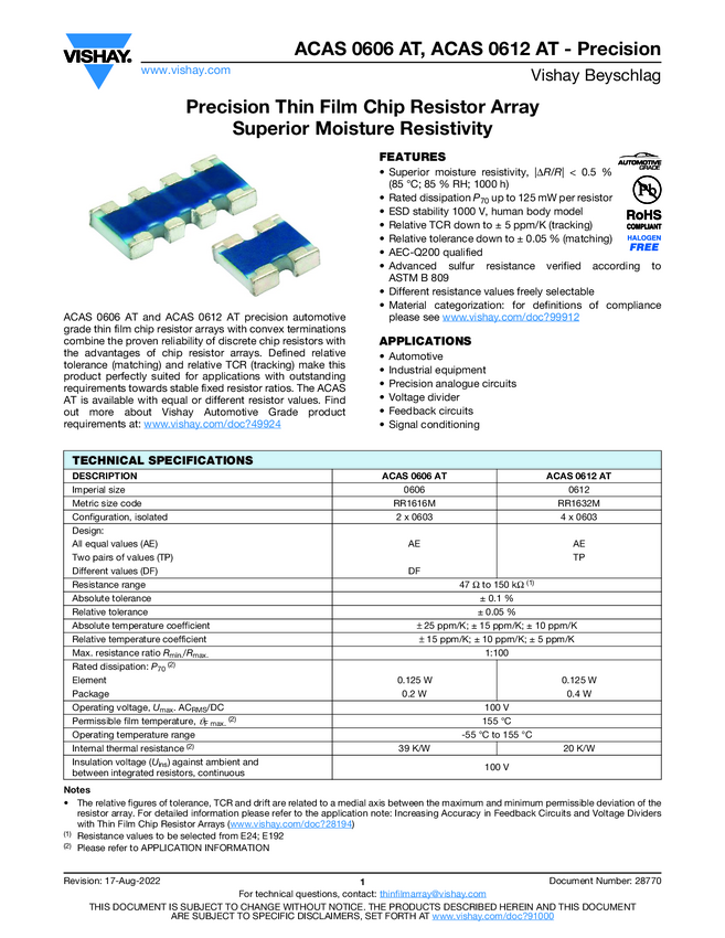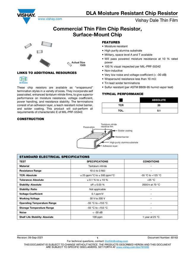 Commercial Thin Film Chip Resistor, Surface-Mount Chip