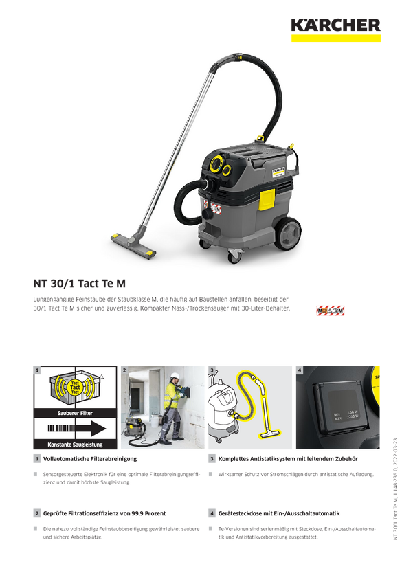 Odkurzacz do pracy na sucho i mokro Kärcher Professional NT 30/1 Tact Te M 1.148-235.0 74 l/min 30 l 1 szt.