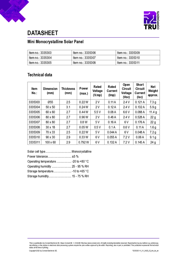 Moduł monokrystaliczny TRU COMPONENTS TC-13341212 0.22 W 2 V
