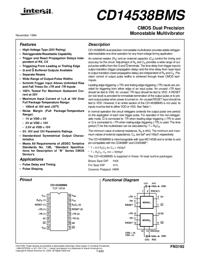 CMOS DUAL PREC MONOSTABLE MULTIVIBRATOR