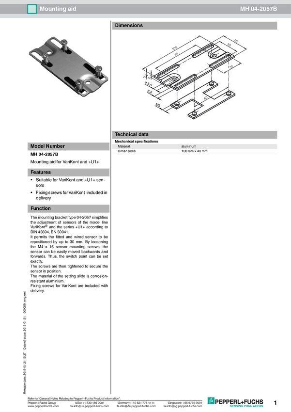 Akcesorium montażowe Pepperl+Fuchs MH 04-2057B 24-0099 Montag 000059 5 szt.