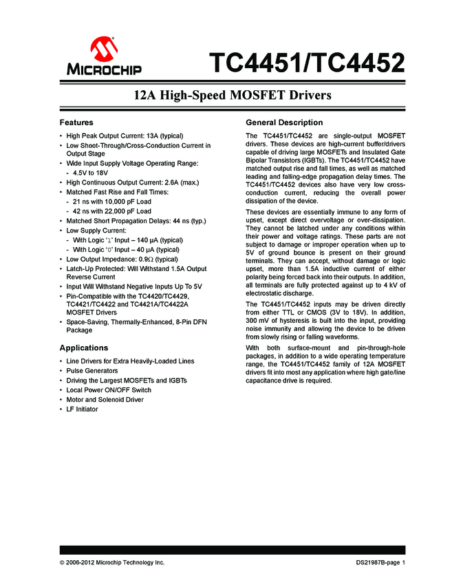 TC4451/TC4452 12A High-Speed MOSFET Drivers (03/30/2012)