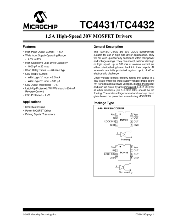 1.5A High-Speed 30V MOSFET Drivers (01/11/2008)