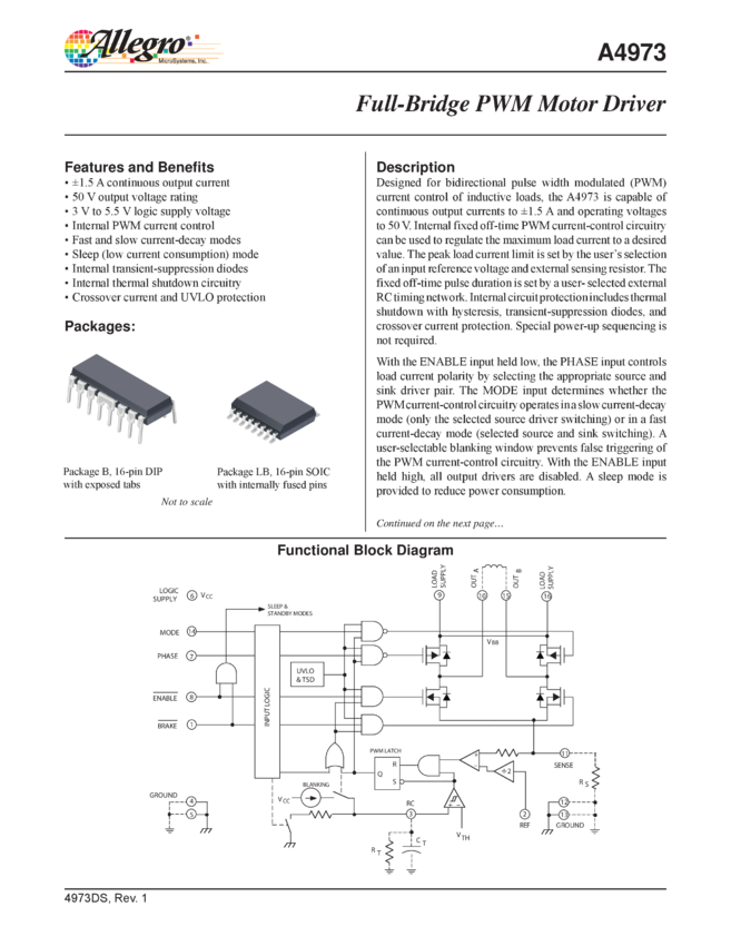 Sterownik szczotkowego silnika DC, napięcie wyjściowe 5 - 50 V, prąd wyjściowy: 1.5 A, pojedynczy pełny mostek