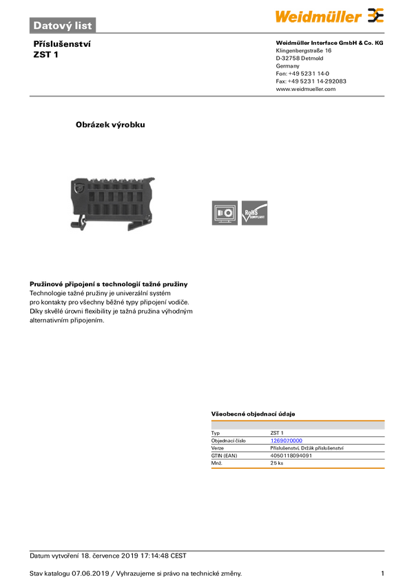 Podstawka do mostków Weidmüller ZST 1 1269070000, 25 szt.
