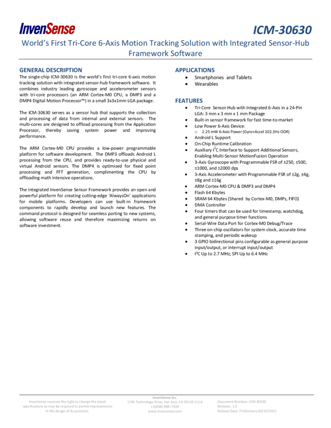 Tri-Core 6-Axis MotionTracking Solution with Integrated Sensor-Hub Framework Software