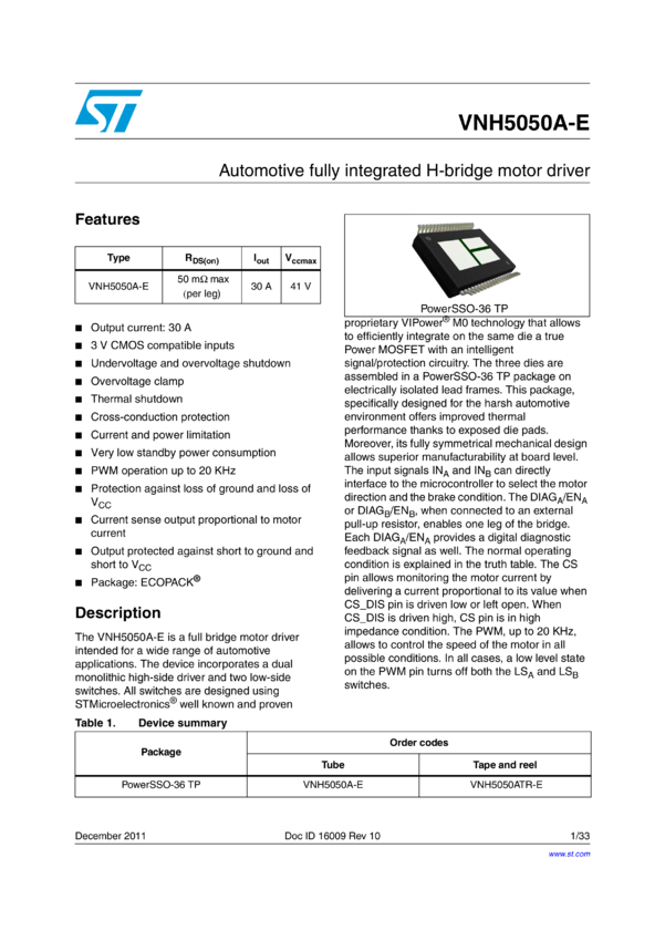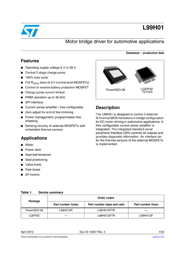AUTOMOTIVE FULLY INTEGRATED H-BRIDGE MOTOR DRIVER