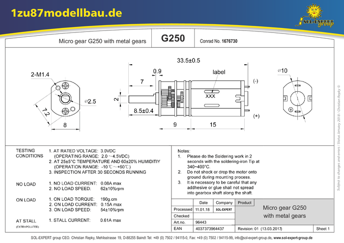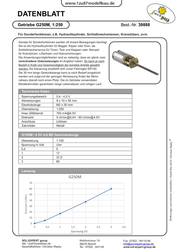 Mikro motoreduktor Sol Expert 96443 1:250 6 - 100 U/min