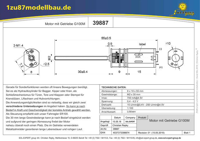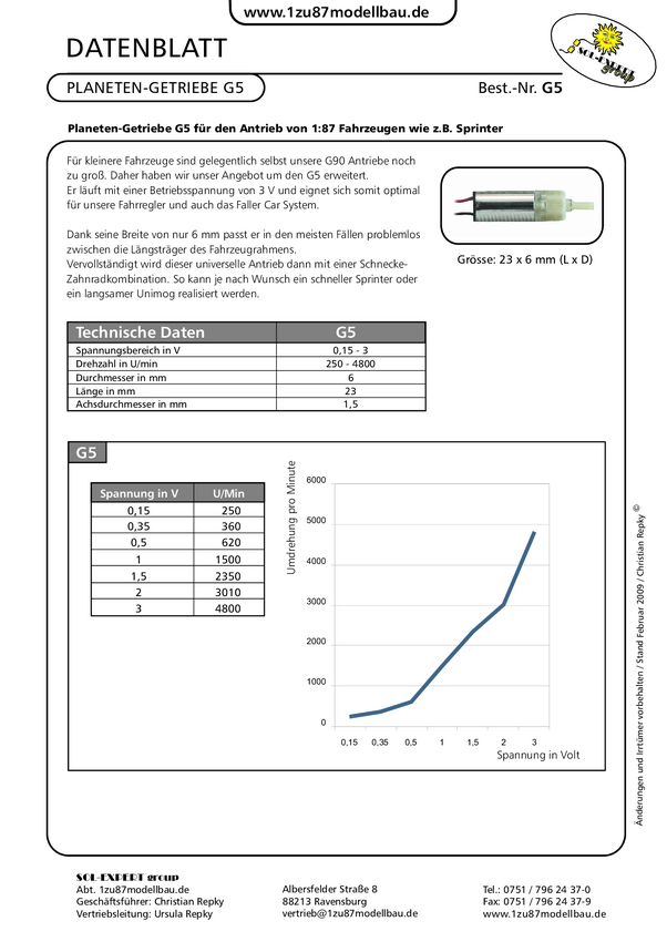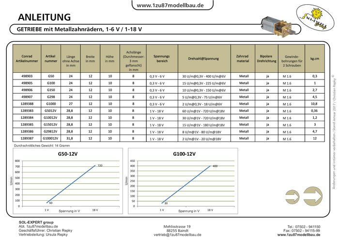 Mikro motoreduktor Sol Expert G150 1:150 10 - 150 U/min