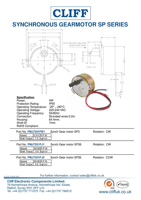 Cliff FMJ7201FJ1 Motoreduktor 240 V 36 U/min