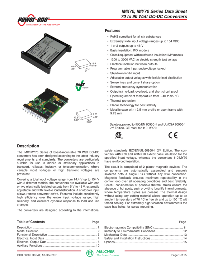 Converter, DC-DC, Board-mountable, Current-Mode PWM, 70W, 24Vdc in, Dual 24Vdc/1.3A Out, RoHS, for mobile applications