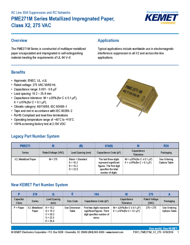 Cap Film 0.0068uF 275V MP 20% (13.5 X 5.1 X 10.5mm) Radial 10.2mm 110°C Bulk