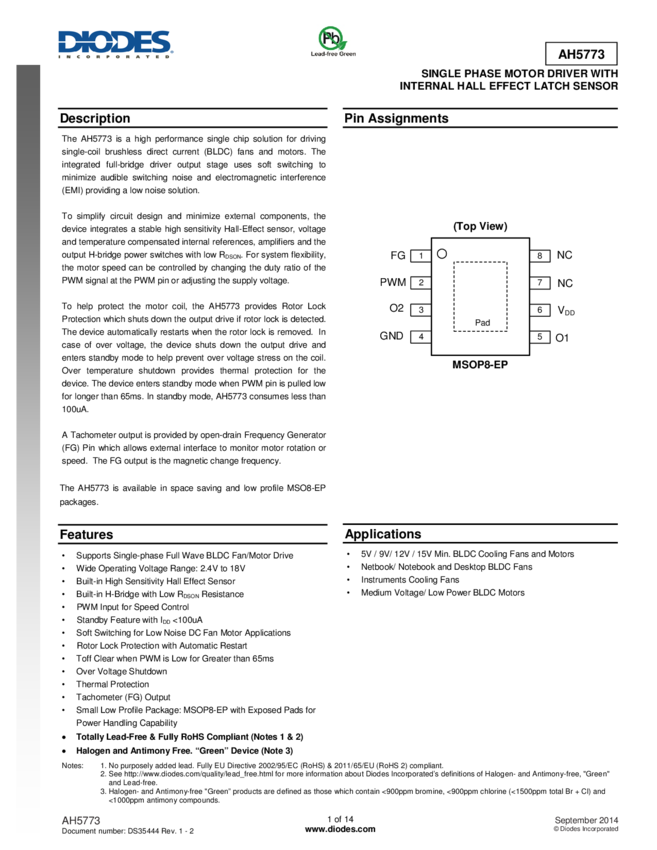 Hall Effect Sensor 1000mA Latch 3.3V/5V/9V/12V/15V 8-Pin MSOP EP T/R