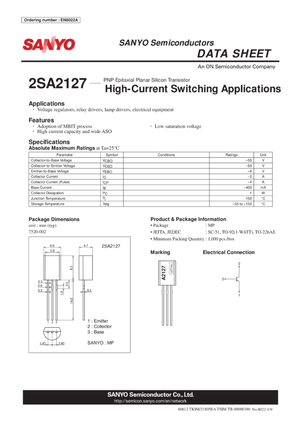 Bip Transistor -50V -2A VCE(sat);-0.4V max. PNP Single MP