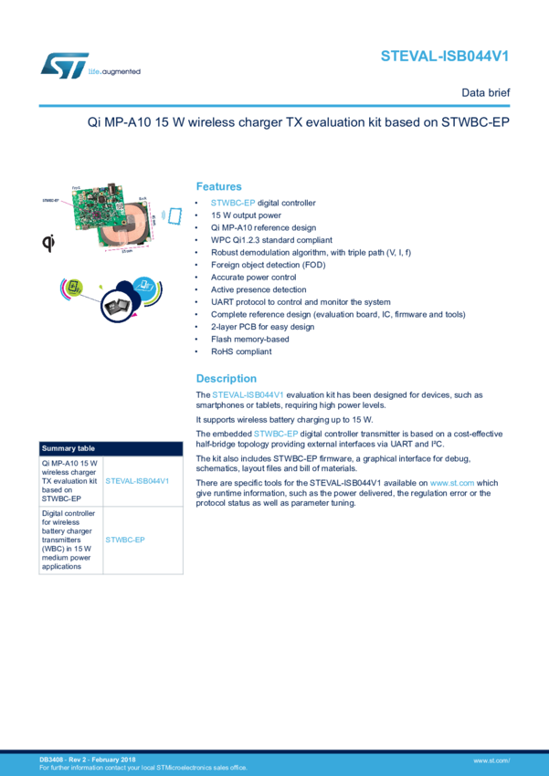 Qi MP-A10 15 W wireless charger TX evaluation kit based on STWBC-EP