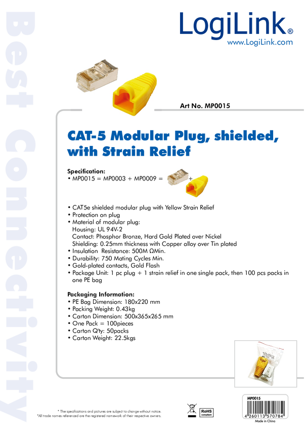 złącze męskie proste RJ45 LogiLink MP0015 MP0015 Ilość styków: 8P8C 100 szt.