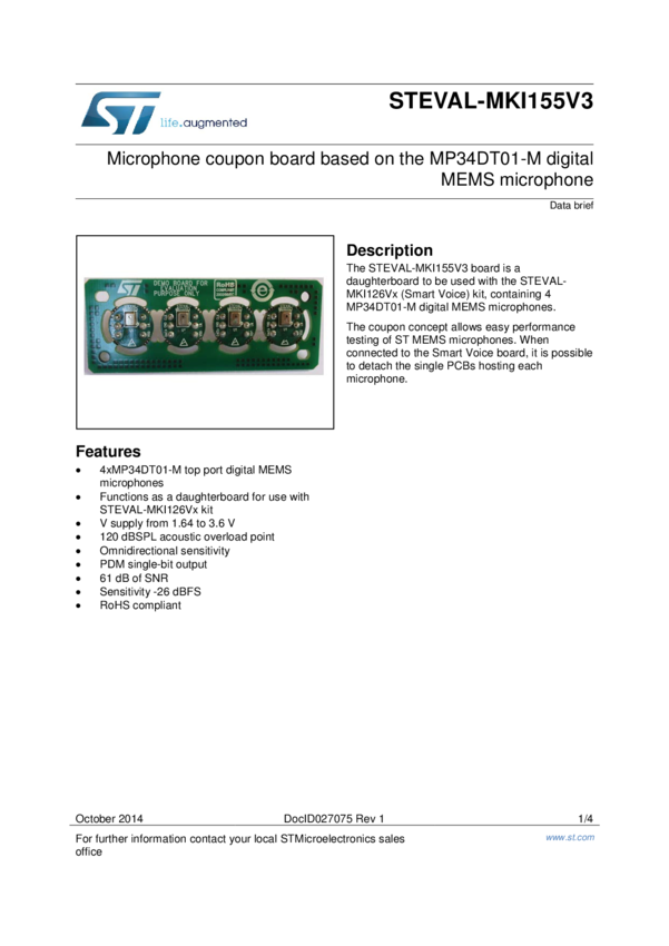 Microphone coupon board based on the MP34DT01-M digital MEMS microphone