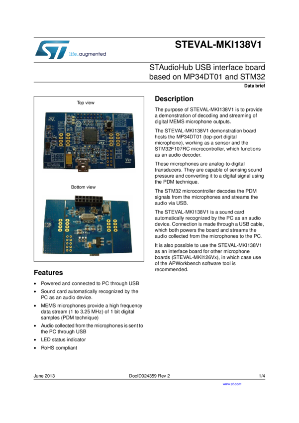 STAudioHub USB interface board based on MP34DT01 and STM32