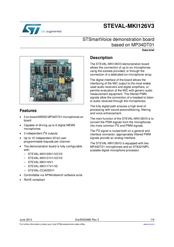 Digital MEMS microphones expansion board based on MP34DT01-M for STM32 Nucleo.