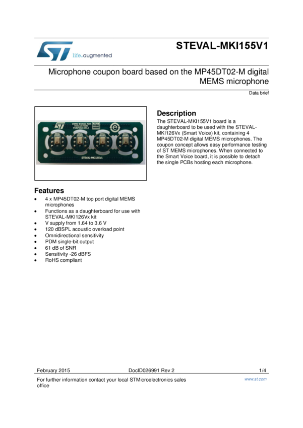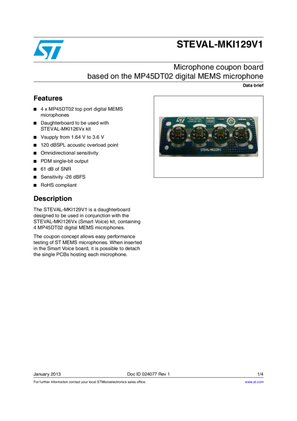 Microphone coupon board based on the MP45DT02 digital MEMS microphone