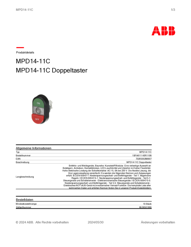 ABB 1SFA611143R1108 MPD14-11C Przycisk podwójny czerwony, zielony 1 szt.