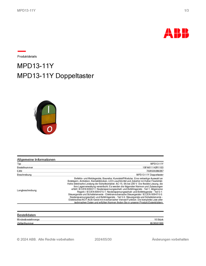 ABB 1SFA611142R1103 MPD13-11Y Przycisk podwójny czerwony, zielony 1 szt.
