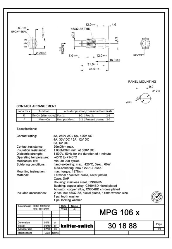 Switch Push Button ON Mom SPDT Round Plunger 6A 250VAC 30VDC Momentary Contact Solder Tag Panel Mount