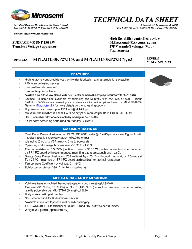 MPLAD30KP14A – MXLPLAD30KP400CA(e3)